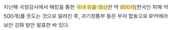 - 2024년, 부산의 한 1인 원룸에서 IP카메라를 통해 찍힌 영상이 불법 음란물 사이트에 올라왔습니다.