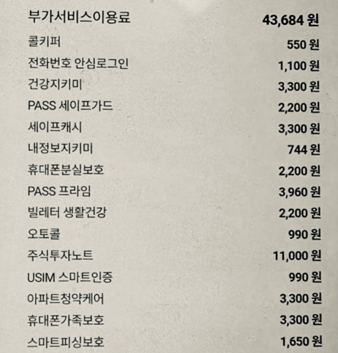 “부가서비스 뭐 가입되어 있는지 아시나요?”